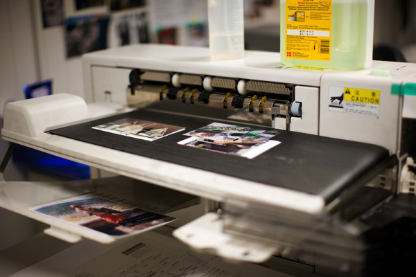 Лаборатория печатает традиционнным, фотохимическим способом.